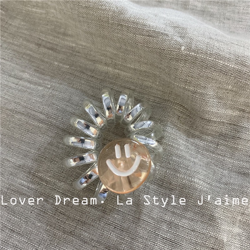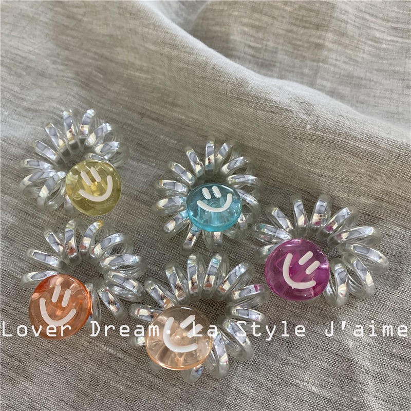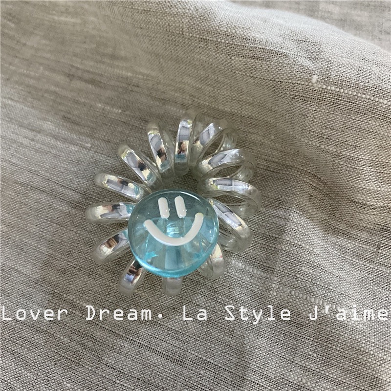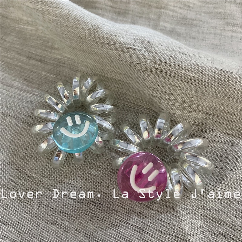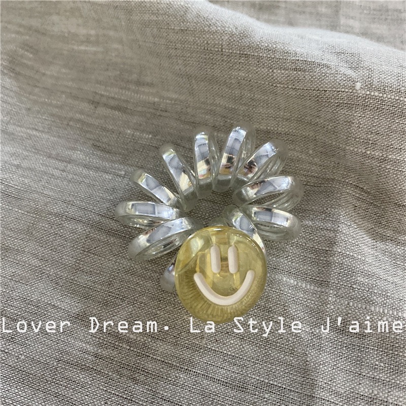 银闪闪的电话线发圈,搭配可爱笑脸小挂饰,元气满满!弹性强、不伤发,适合日常扎发或手腕装饰,小巧但超吸睛!