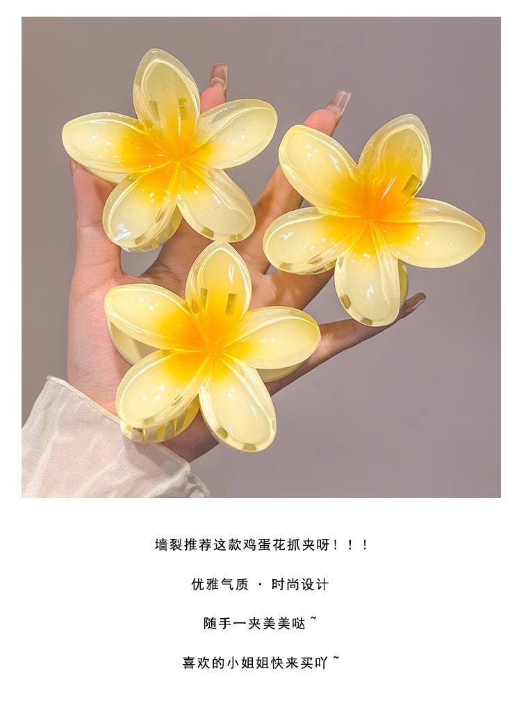软萌鸡蛋花造型,像夏天阳光下一朵盛开的花,夹住你的发丝也夹住好心情。轻巧牢固,适合通勤、出游或约会,让你一秒变身南国甜妹!