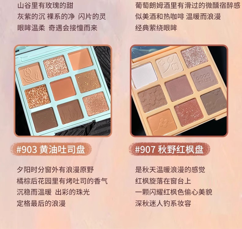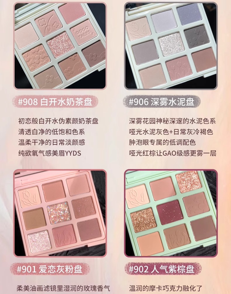 在眼中绽放一座秘密花园!GOGO TALES 戈戈舞「秘密花园」9色眼影盘灵感来自梦境中的花朵、薄雾与甜点。色彩从温柔奶油色到浪漫花系棕调,帮助你打造如童话般梦幻的日常妆容。无论是温柔少女,还是爱做梦的你,都值得拥有这片属于自己的花园~ 🌷☁️
